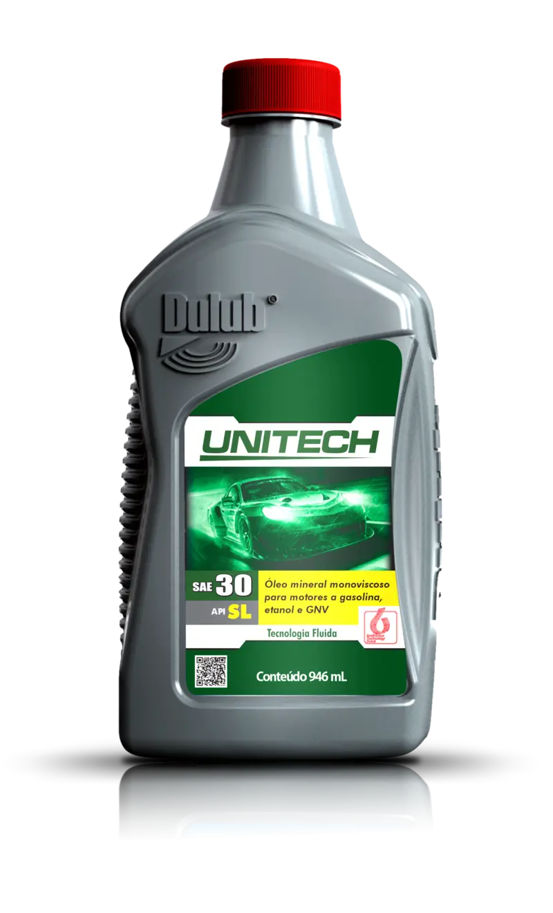 Óleo lubrificante mineral monoviscoso de última geração para motores a gasolina, etanol e automóveis adaptados para uso de GNV. O Dulub Unitech atende ao nível de desempenho API SL e é compatível com todos os lubrificantes com esta especificação disponíveis no mercado. Possui Grau SAE 30.