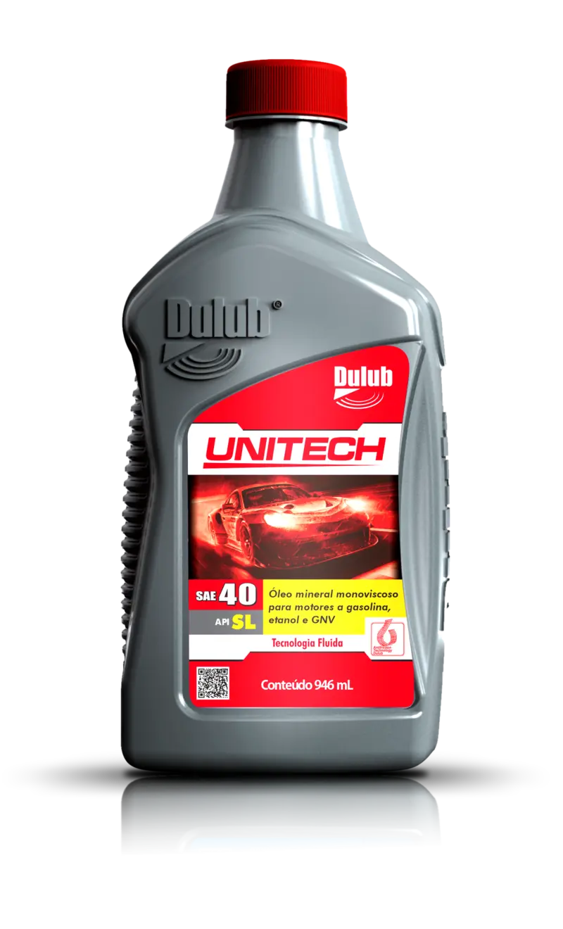 Óleo lubrificante mineral monoviscoso de última geração para motores a gasolina, etanol e automóveis adaptados para uso de GNV. O Dulub Unitech atende ao nível de desempenho API SL e é compatível com todos os lubrificantes com esta especificação disponíveis no mercado. Possui Grau SAE 40.