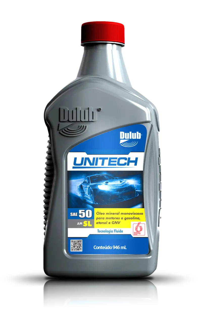 Óleo lubrificante mineral monoviscoso de última geração para motores a gasolina, etanol e automóveis adaptados para uso de GNV. O Dulub Unitech atende ao nível de desempenho API SL e é compatível com todos os lubrificantes com esta especificação disponíveis no mercado. Possui Grau SAE 50.